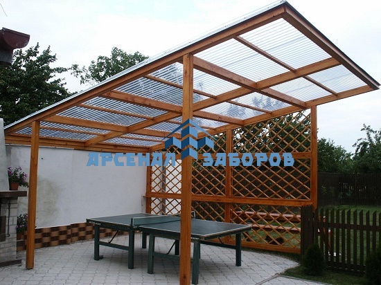 Стандартные характеристики каркаса навеса: столбы 80х80х3мм.