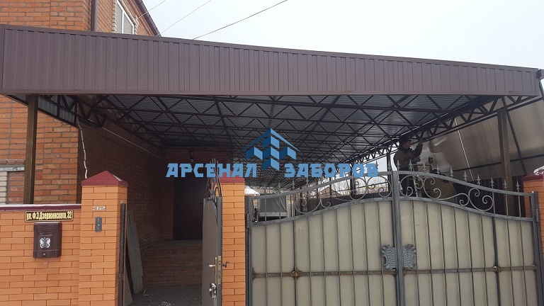 Стандартные характеристики каркаса навеса: столбы 80х80х3мм.