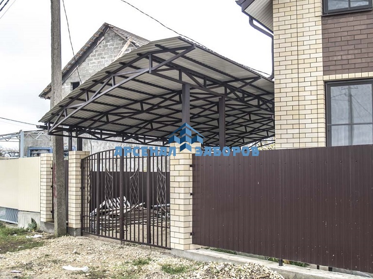 Стандартные характеристики каркаса навеса: столбы 80х80х3мм.