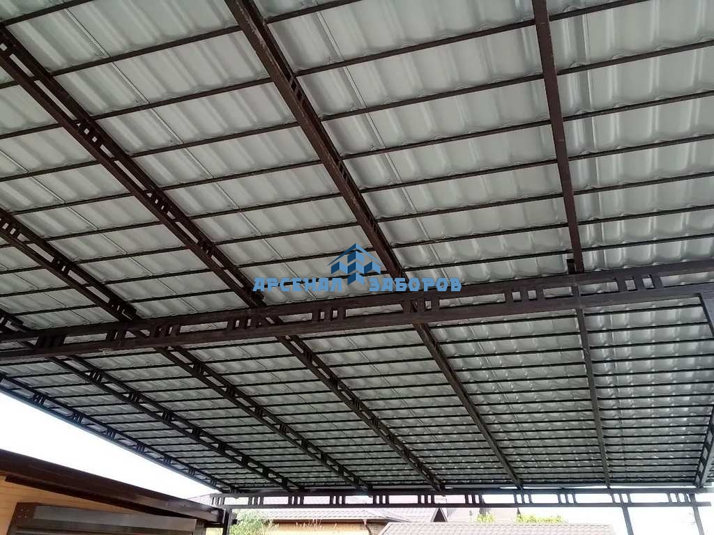Стандартные характеристики каркаса навеса: столбы 80х80х3мм.