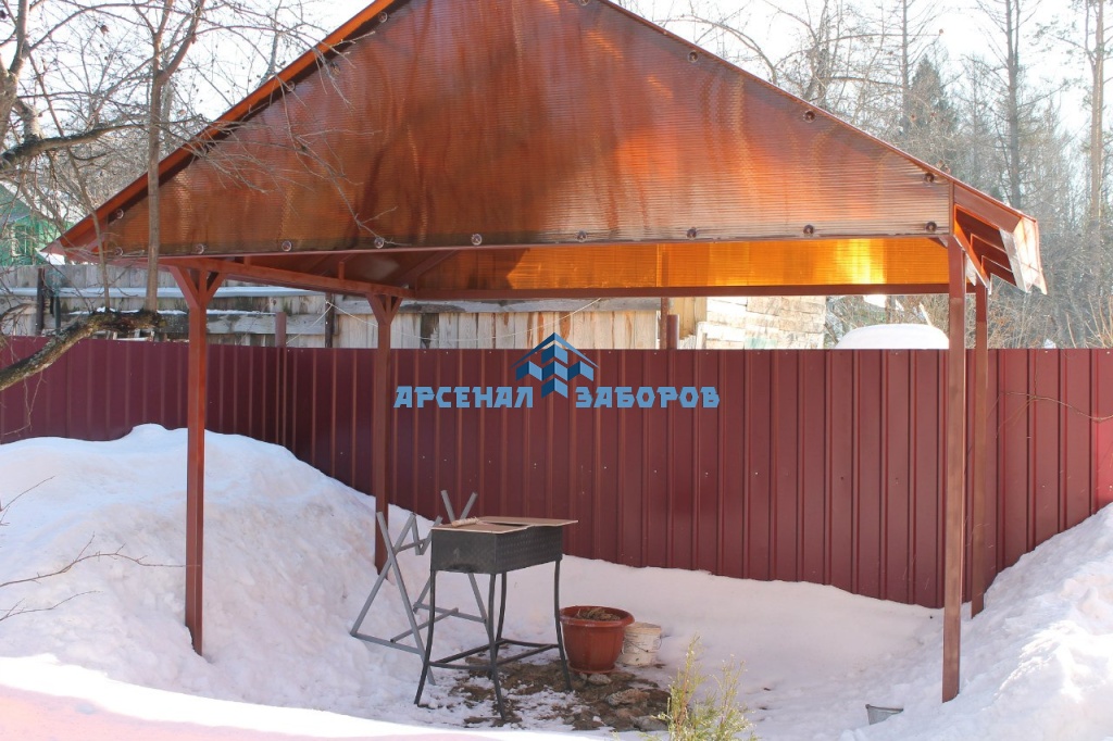 Стандартные характеристики каркаса навеса: столбы 80х80х3мм.