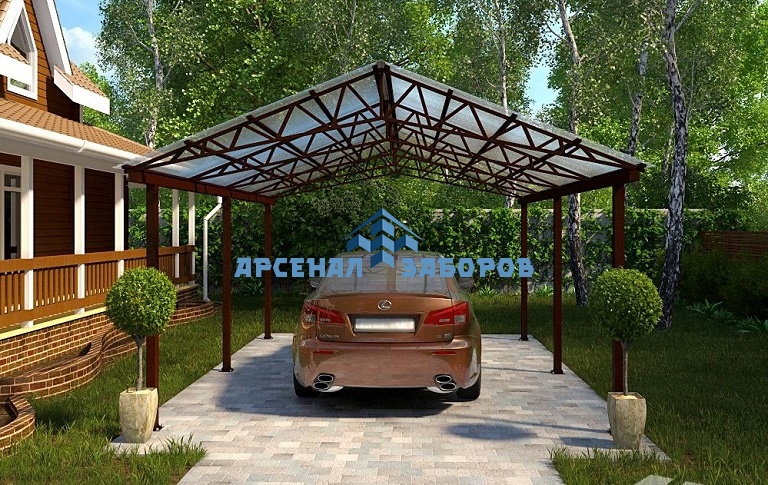 Стандартные характеристики каркаса навеса: столбы 80х80х3мм.